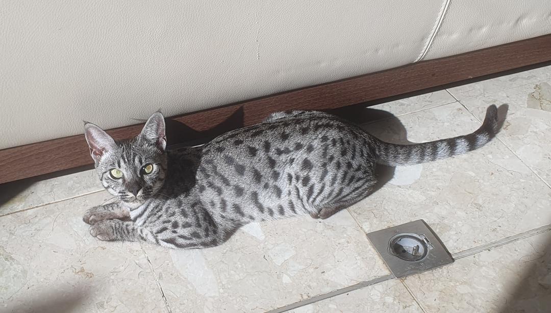 Et voici le prince héritier, Volt : un jeune mâle argenté, plus sombre qu’Ulysse, mais tout aussi prometteur niveau charisme félin. Sous ses airs mystérieux et son pelage ténébreux, se cache un ado en pleine découverte du monde… et de ses moustaches. Il observe tout, joue beaucoup, et commence déjà à tester son autorité sur les coussins. Bref, le trône est en de bonnes pattes — il ne lui manque plus qu’un peu de maturité... et peut-être un rappel sur qui commande (spoiler : ce n’est plus nous).