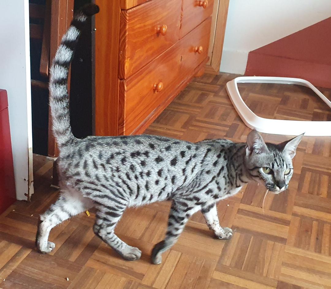 C'est notre seigneur argenté, digne héritier des félins royaux. Avec sa robe gris argent aux reflets hypnotisants et ses yeux verts à faire fondre un iceberg, il ne passe jamais inaperçu. Majestueux, élégant, et un brin coquin, il alterne entre poses de top modèle et courses poursuites dignes d’un film d’action. Mais derrière son allure de félin sauvage se cache un vrai cœur tendre… surtout si vous avez des friandises !